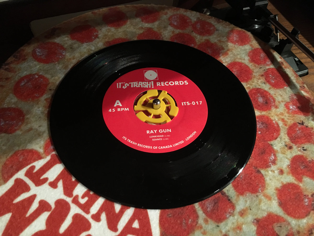 Trashy rock n roll from outta this world! This rippin 3 track 7" single is ripe with thick bass, surfy rhythms, & screeching guitars. Good for spinning between b-horror flicks, reading Adventure Comics along to, or dancing around your living room to.